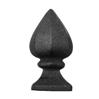 Наконечник, литьё. на трубу 40х40 мм. Способ крепления - электросварка. Используется при изготовлении кованых ограждений, на начальный столб лестничных перил, на кованых кроватях и других изделиях.
