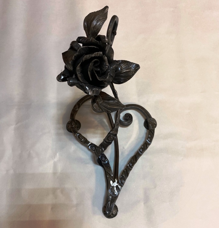 Кованая роза на подставке сердце, сталь, ручная работа.